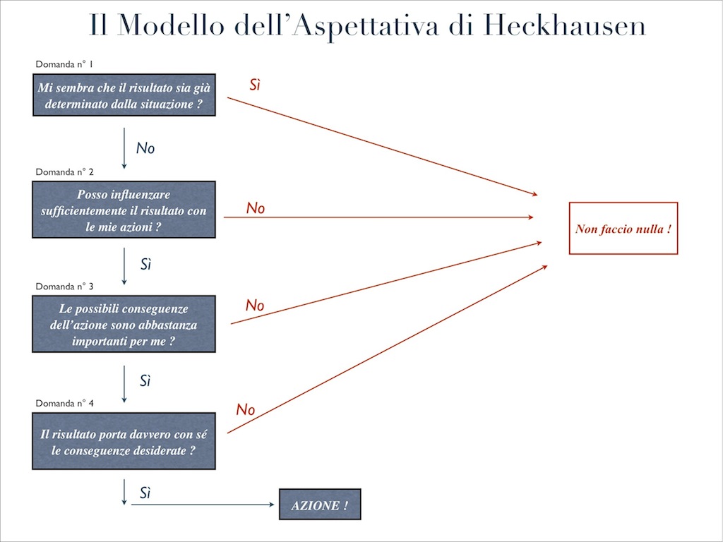 Oggi, mentre cercavo di fare ordine (per altro con scarsi risultati) nella massa di libri che troneggia indisturbata fra scrivania e scaffali vari, mi è casualmente (ri)capitato tra le mani il Modello dell’Aspettativa di Heckhausen.