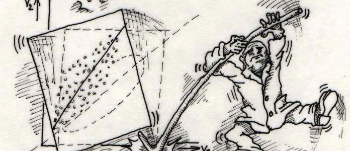 Giunto di fronte ad una parete coperta di tubi e derivazioni estrasse un grosso martello dalla sua borsa e, come un chirurgo quando cerca il punto esatto dell’incisione, passò la punta del dito sulla superficie di uno di essi: ciò fatto vi sferrò un colpo secco e ben assestato, dopodiché ripose il martello.